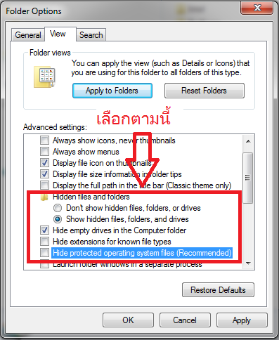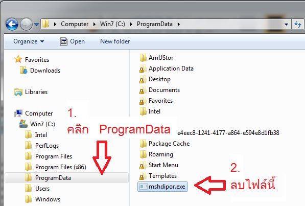 แต่ถ้ายังไม่สะดวกไปดาวโหลด avira ให้ทำตามรูปต่อไปนี้ เพื่อลบไวรัสออกด้วยตัวเอง