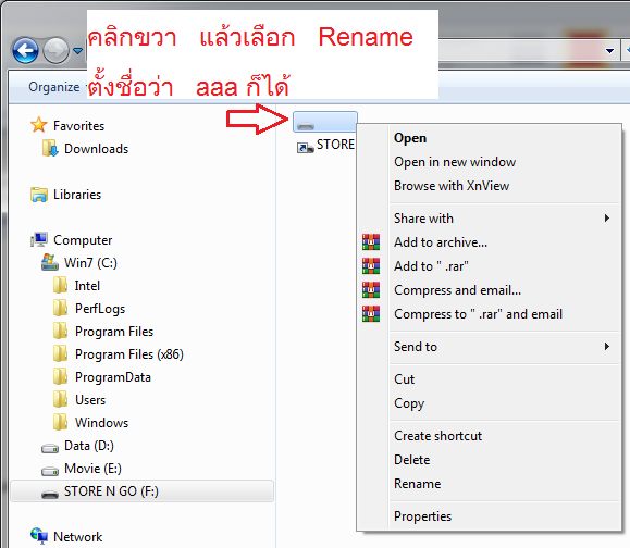 เมื่อเราเสียบ flash drive เราจะเห็นแค่ shortcut