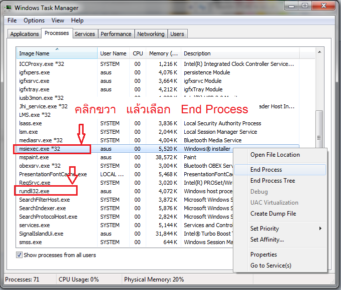 แต่ถ้ายังไม่สะดวกไปดาวโหลด avira ให้ทำตามรูปต่อไปนี้ เพื่อลบไวรัสออกด้วยตัวเอง