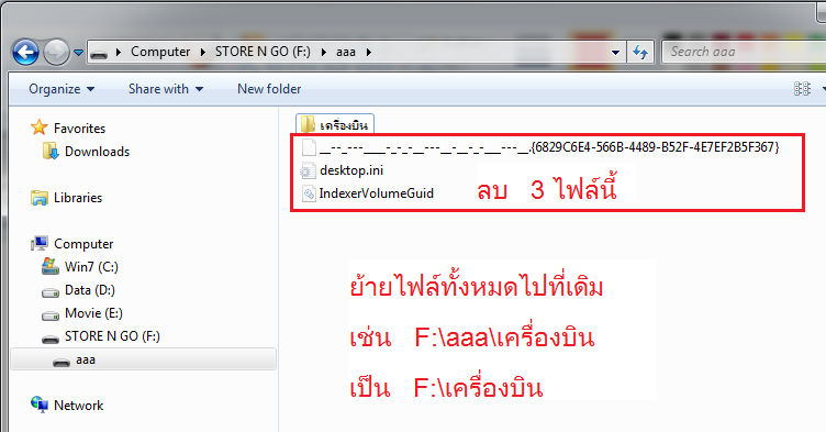 เมื่อเราเสียบ flash drive เราจะเห็นแค่ shortcut